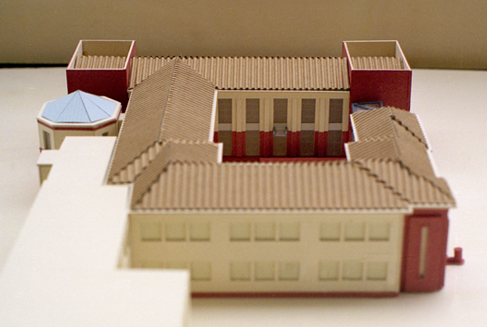 The project concerns the extension of a school complex built in the 1940s, to which a block was added in the 1960s, and as such is part of an overall urban plan for the development of an integrated educational district. The proposed extension is characterised by a compact building of 1225 m2, which creates an enclosed court flanked to the north side by the existing complex. This design solution rationalises the existing layout, whilst conserving surrounding green space. At the same time it respects the building's existing dimensions (two stories), materials (brick and plaster) and rhythm of the facade (plenum and void). The classroom block, which faces the park, is characterized by two closed and symmetrical brick buildings, and the regular column sequence are in line with the architectural schemes of the hay-lofts of the local rural houses. A glazed gallery connects the existing building to the proposed extension.